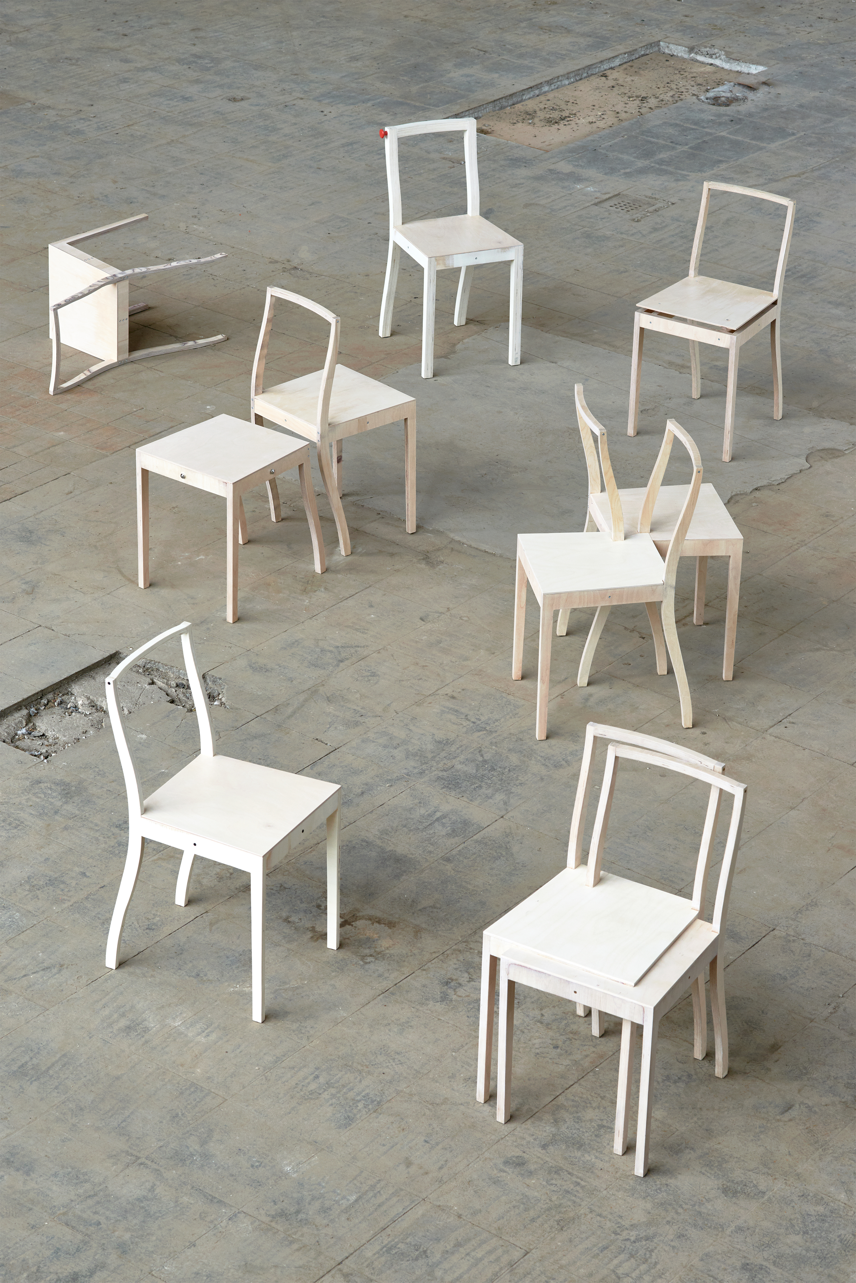 For this reason, the designer has demonstrated their different personas through deviations of the Jasper Morrison ‘Plywood Chair’, archetype selected specifically for its perceived neutrality and ordinary. Each self-portrait object was designed to be inspired by defense mechanisms with ambivalent traits such as narcissism and self-hatred, dependence and independence, flexibility and denial, escapism and regression.